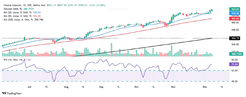 Reached a new 1-week high of ₹559 (Dec 12, 2024), indicating upward momentum.