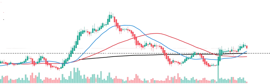 Higher highs and higher lows emerge, with moving averages turning positive.